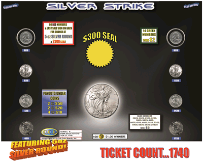Silver Strike Coin Boards feature a whopping 5 Ounce Silver Eagle Coin